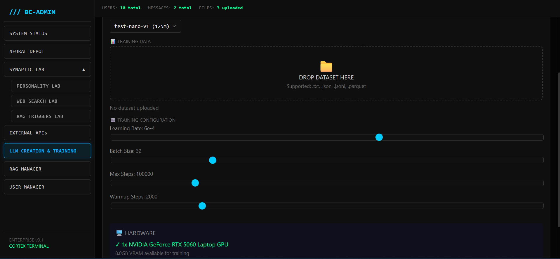 Create YOUR Nano-models for specific tasks. 125M parameters on RTX 5060.