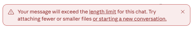 A red banner appeared telling me I had exceeded the length limit. I am now locked out of the very context I built, unable to even extract a summary to move forward. The tool locked the door from the inside.